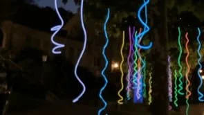 Die Farbigkeit derJahreszeiten-Gemälde von Franz Gertsch wird in bewegtes Licht umgesetzt. Die Arbeit ist eine Erinnerung an ein altes Kinderspiel, das auf diesem Platz gespielt werden könnte, ebenso wie eine Hommage an Franz Gertsch und sein Werk. Oder ist sie ein vielstimmiges nächtliches Gemurmel?